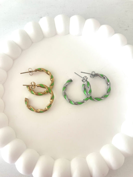 Oorbellen gedraaid groen - goud