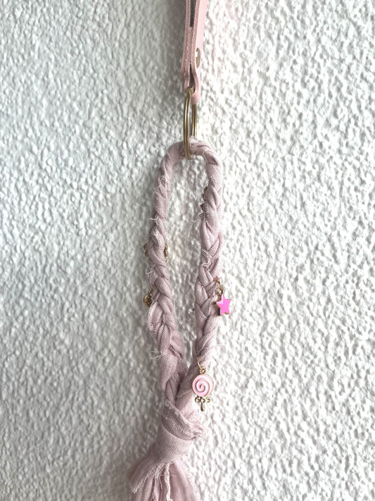 AanbiedingTelefoonstrap bruin met bloemetjes