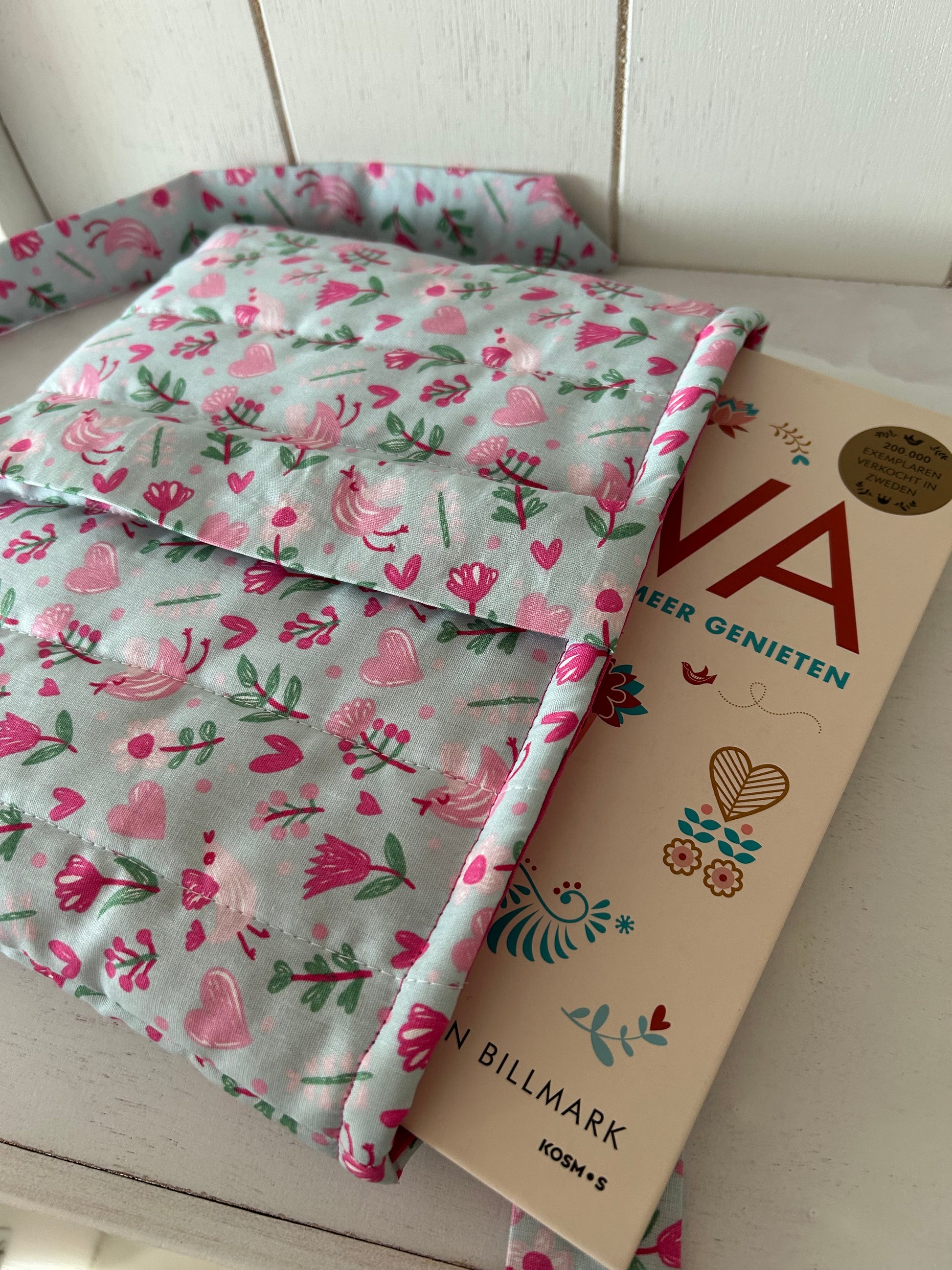 Handgemaakte boekenhoes verstevigd met fiberfill.